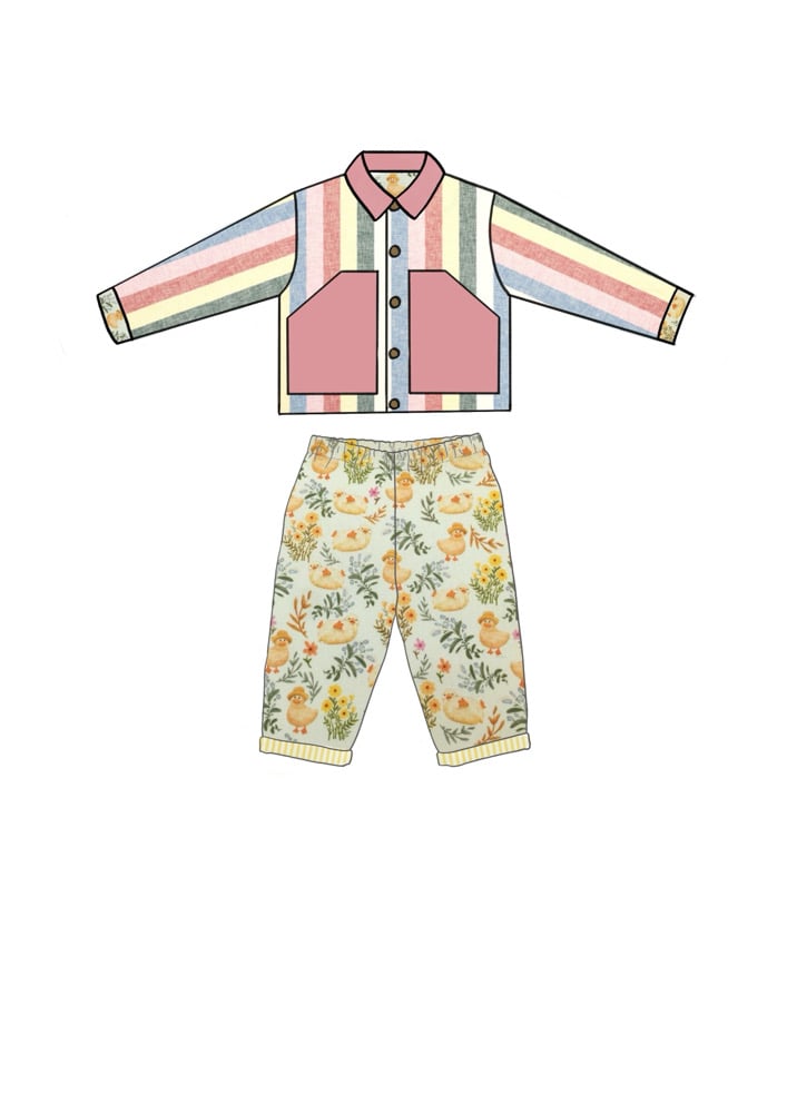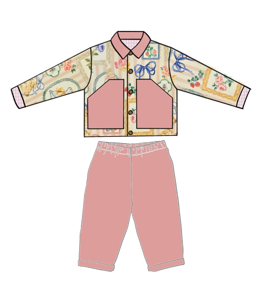 Both jacket and trousers to be 12-18 months, with the trousers to have a 9-12 month waistband elastic. Awaiting measurements to confirm.