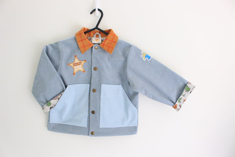 Toy Story jacket age 12-18 months, blue and white stripe lining instead of beige Toy Story print. Listing price includes shipping and customs fees to US. @jennawhetstone