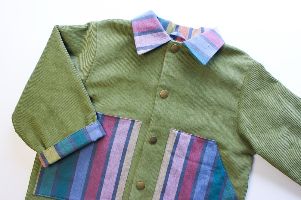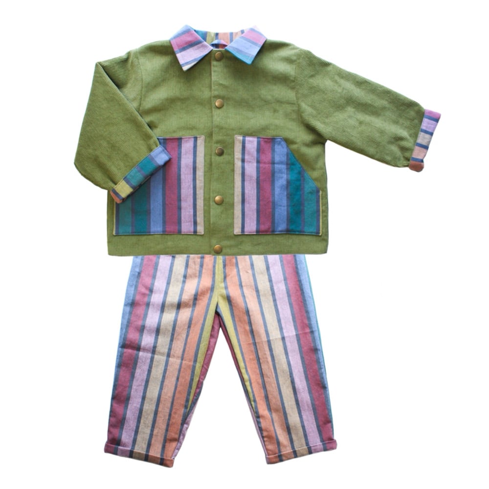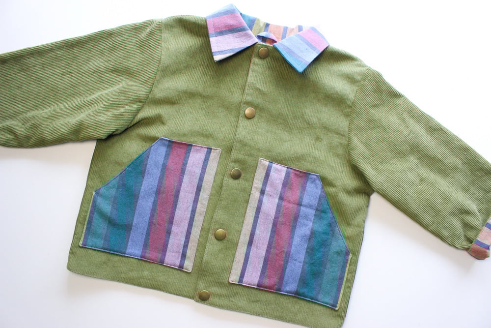 EZ Jacket- green cord & muted rainbow