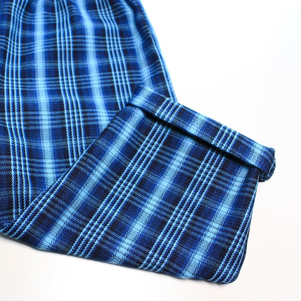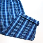 The coolest half and half style; navy cord on one side, check denim on the other.