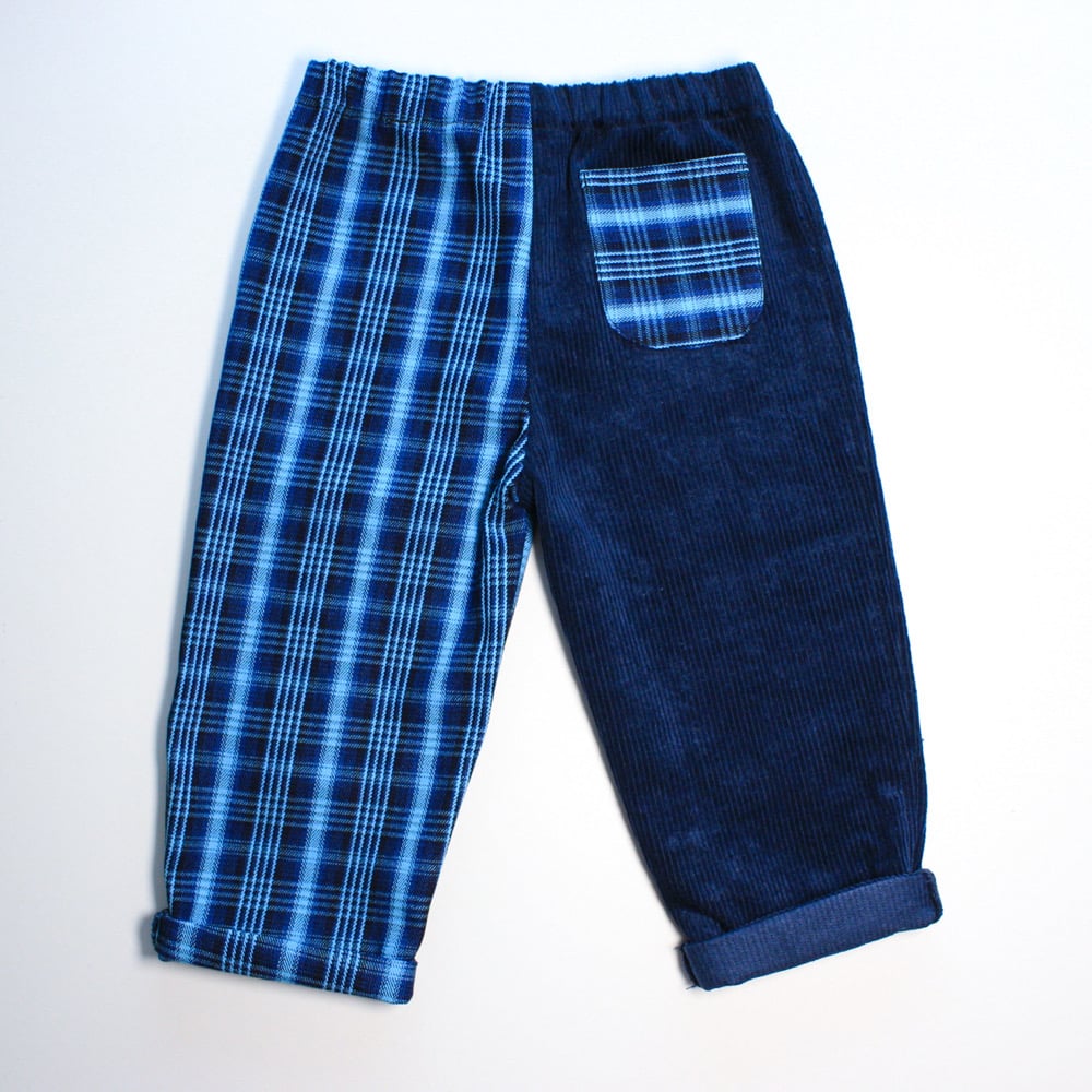 Half & half- navy cord and check denim