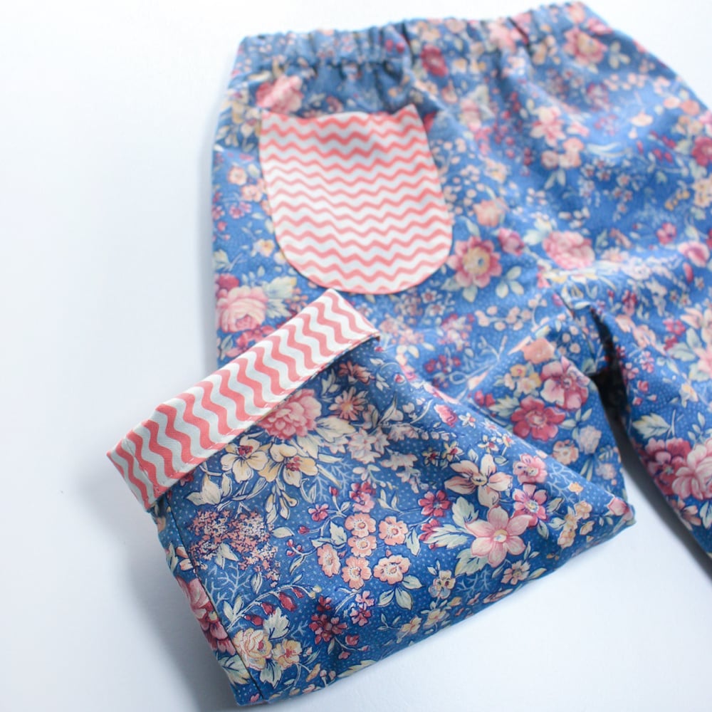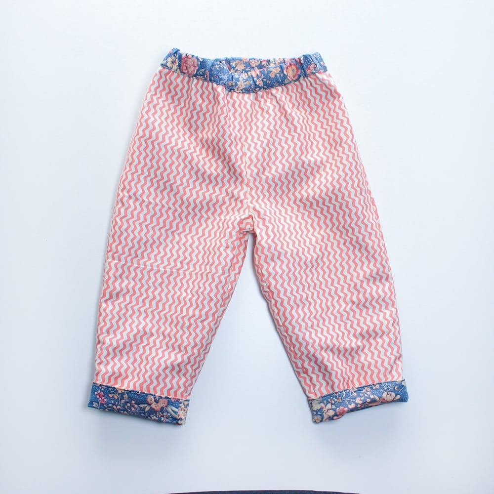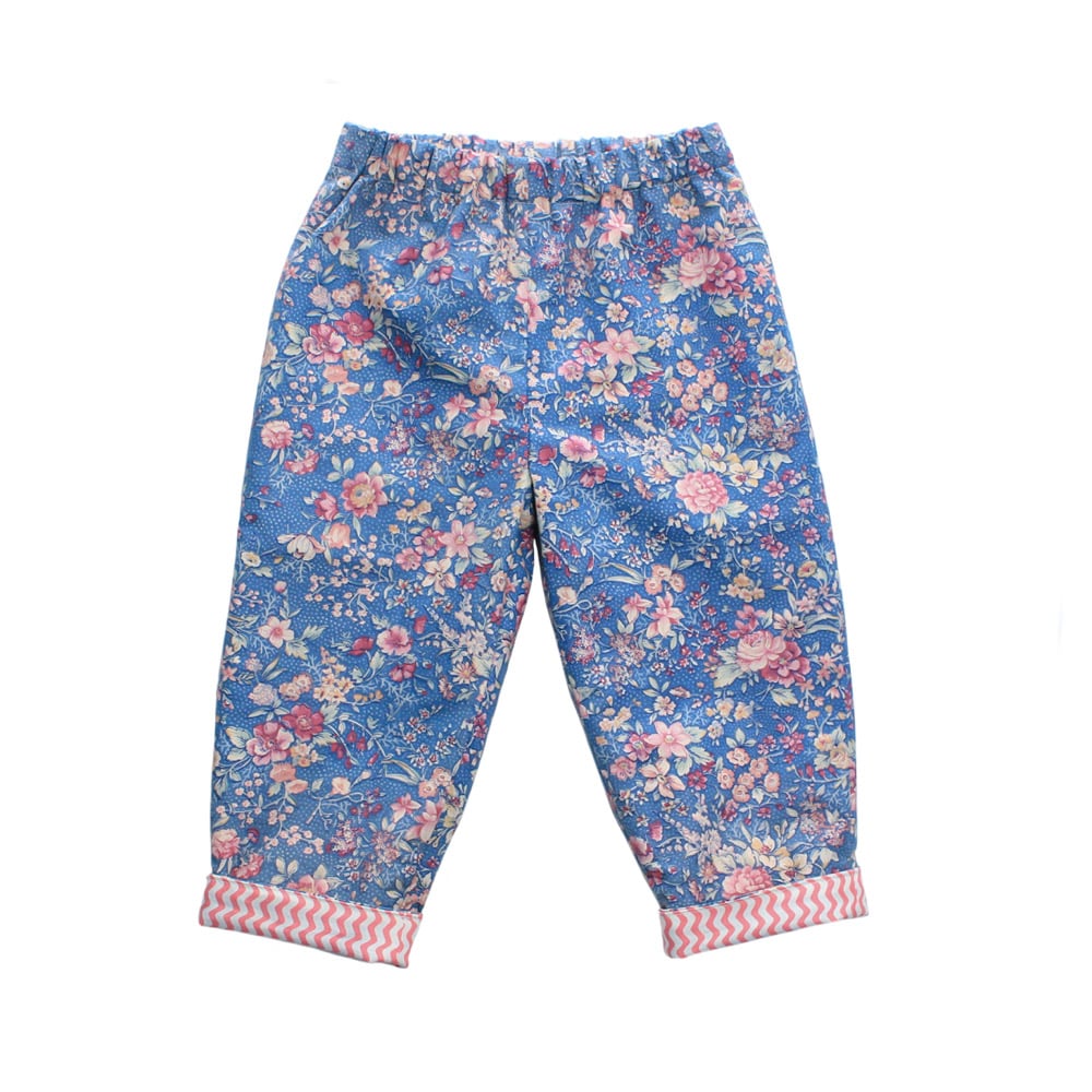 Reversible trousers- floral squiggle (ready to ship 6-9M)