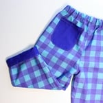 Gorgeous purple and blue gingham cotton on one side, plain deep purple on the other with heart patches for a bit of flare!